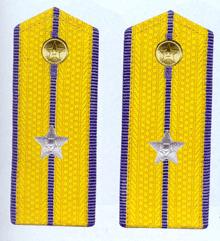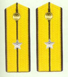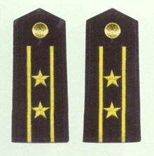 ②海军中尉:为海军副连职军官的主要军衔。此外,它还是海军正连职军官和排职军官的辅助军衔,即资历较浅的正连职军官和资深的排职军官,也可被授予海军中尉军衔。