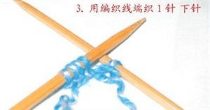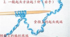 3.把右针上的1针穿在左针上,原来起的5针还有3针。