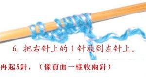 再起5针,收2针;把右针上的那针移到左针上;现在左针上有6针啦。