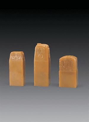 都成坑石雕商颂博古套章(三件)