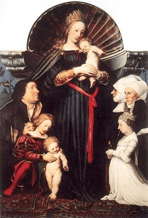 圣母前的迈尔像 小荷尔拜因板上油画 1516年 146.5×102厘米 现藏达姆施塔特大公宫美术馆