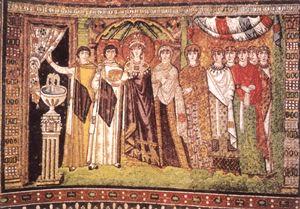 皇后西奥多拉及其侍从 拉文纳 镶嵌画 547年 现藏圣维达尔教堂