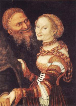 妓女与老人 克拉纳斯油画 约1530年 79×57.5厘米 贝桑松考古和艺术博物馆藏