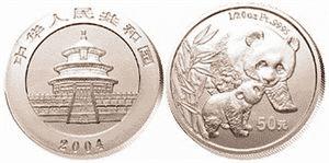 [ 23 ]: 10.北京天坛祈年殿,并刊国名、年号/母子大熊猫图,并刊面额 1/20盎司铂质纪念币为精制币,含纯铂1/20盎司,成色99.95%,形状为圆形,直径14毫米,面额50元,发行量50000枚。