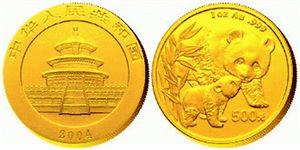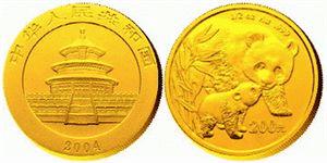 [ 15 ]: 2.北京天坛祈年殿,并刊国名、年号/母子大熊猫图,并刊面额 1/2盎司金质纪念币为普制币,含纯金1/2盎司,成色99.9%,形状为圆形,直径27毫米,面额200元,发行量75000枚。