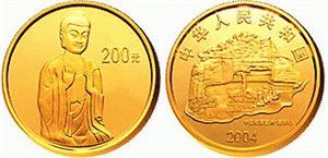 [ 36 ]: [2004]05 2004年7月28日发行中国石窟艺术(麦积山)金银纪念币一套。该套纪念币共3枚,其中金币2枚,银币1枚。