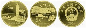 [ 29 ]: [2004]01 2004年5月10日发行中国宝岛台湾——鹅銮鼻、日月潭普通纪念币各一枚。 该两枚纪念币正面主景图案均为国徽,内缘上方刊“中华人民共和国”国名,内缘下方刊“2004”年号。