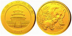 [ 17 ]: 4.北京天坛祈年殿,并刊国名、年号/母子大熊猫图,并刊面额 1/10盎司金质纪念币为普制币,含纯金1/10盎司,成色99.9%,形状为圆形,直径18毫米,面额50元,发行量为250000枚。