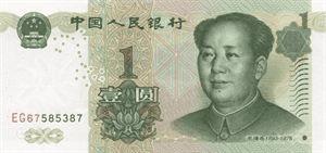 [ 39 ]: [2004]06 2004年7月30日起在全国发行第五套人民币1元纸币。 第五套人民币1元纸币主色调为橄榄绿色,票幅长130毫米、宽63毫米。 正面主景图案为毛泽东头像,左侧为“中国人民银行”、阿拉伯数字“1”、“壹圆”字样和花卉图案,左上角为中华人民共和国国徽图案,左下角印有双色横号码,右下角为盲文面额标记