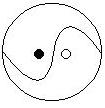 一日,我们漫不经心的将这个S曲线,画到了上面那个飞碟圆柱模型的俯视图中,结果却令我们感到了如雷轰顶般的惊鄂与震憾。因为这是一个《八卦太极图》的雏形。情急之下将这个带有S曲线的圆放入飞碟飞行力学示意图的8种飞行情况图中,再将负物理区域涂成黑色,就得到了一个与《八卦太极图》几乎没有多大差别的图形。见左下图: