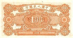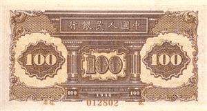 第一套人民币发行后,原来流通在各解放区的地方币陆续停止发行,并按规定比价收回。在全部收回前,按一定比价照常流通。其比价是:人民币对冀南银行币、北海银行币、华中银行币和中州农民银行币比价为1:100;人民币对晋察冀边区银行币、东北银行币、热河省银行币和长城银行币比价为1:1000;人民币对西北农民银行币和陕甘宁边区商业流通券比价为1:2000。