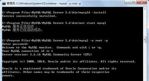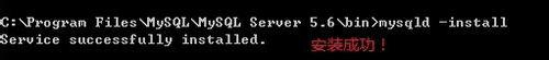 打开一个cmd.exe,将目录切换到D:\MySQL-5.6.13\bin,运行: mysqld -install ,提示服务安装成功!运行services.msc一看,确实有一个名为MySQL的服务了,启动它。