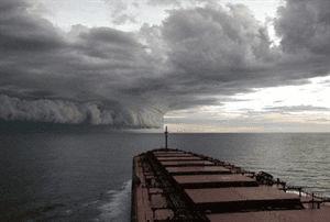 看出来是否觉得没什么东西呢?你认真看呀….是云哟..这个海天相连的地方..看起来云就像墙一样..真是少见呢~!