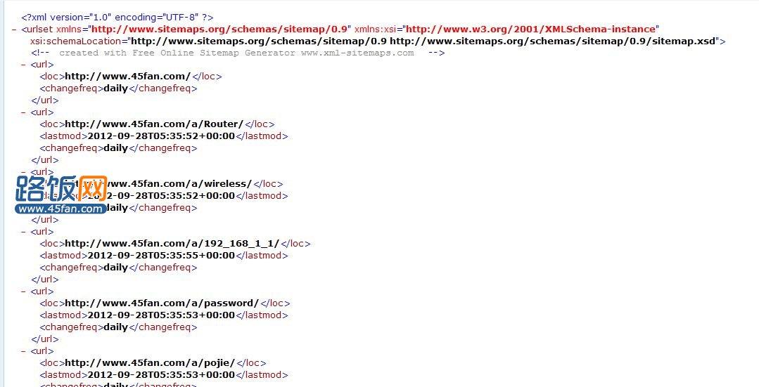 所以笔者今天特意新建了XML地图,地址为:http://www.45fan.com/sitemap.xml