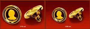 [ 67 ]: 2. 1/10盎司金质纪念币为普制币,含纯金1/10盎司,成色99.9%,形状为圆形,直径18毫米,面额50元,发行量为150000枚。