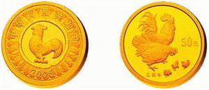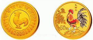 [ 53 ]: [2004]14 2004年10月23日发行2005中国乙酉(鸡)年金银纪念币一套。该套纪念币共12枚,其中金币6枚,银币6枚。