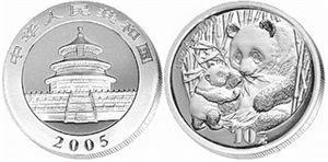 [ 66 ]: [2004]17 2004年11月26日发行2005版熊猫贵金属纪念币一套。该套纪念币共12枚,其中金质纪念币7枚,银质纪念币3枚,铂质纪念币1枚,钯质纪念币1枚,均为中华人民共和国法定货币。