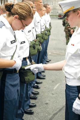 一举手一投足,任何瑕疵都逃不过教官的法眼。劳拉·基尔南在6月26日的R日(Reception Day)训练中被抓了“典型”。