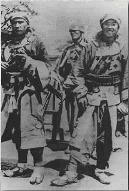 义和团团民。义和团源自义和拳等民间秘密结社。最初流行于山东、河北、河南等地,为反清的秘密组织,1899年下半年,义和拳改称义和团,提出“扶清灭洋”口号。清go-vern-ment对义和团的态度经历从敌视、镇压到容忍、利用的转变,义和团的势力发展到京津地区,朝廷官员、军队中的士兵、军官及大量平民加入义和团。义和团缺乏统一组织,坛口、拳场是其基本单位。其信仰是各种迷信、神话的混合体,相信符咒能使人刀枪不入等,但它表现了下层社会对外国侵略势力的本能的反抗