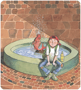 黄昏时,我疲惫不堪地来到无人的广常一只张嘴不停喷水的鲤鱼,在夕阳下,发出耀眼的光亮。我直直望着喷在空中,不断跳跃的水滴,突然掉泪。