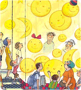 几米是这样把故事说下去,淡淡地。在鲜丽丰富的色调底下,一直是种淡淡的情绪,有人说是淡淡地愁,带点些许的悲伤;也有人说,淡淡的背后,其实拥有莫大的想像空间,比如一位艺术欣赏的老师说着,掉落的月亮其实是拥有某种象征的意念。象征什么?生命与死亡?一个朋友和关于他的记忆?还是维系着生命的一种信念?