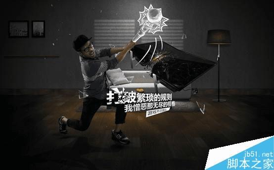 三组照片,不同动作。用夸张的表现形式强调体感操作的特点。隐喻我们的游戏画面很好很逼真,很容易让人身临其境,告诉玩家玩游戏时候不要太入戏,小心你的电视屏幕。