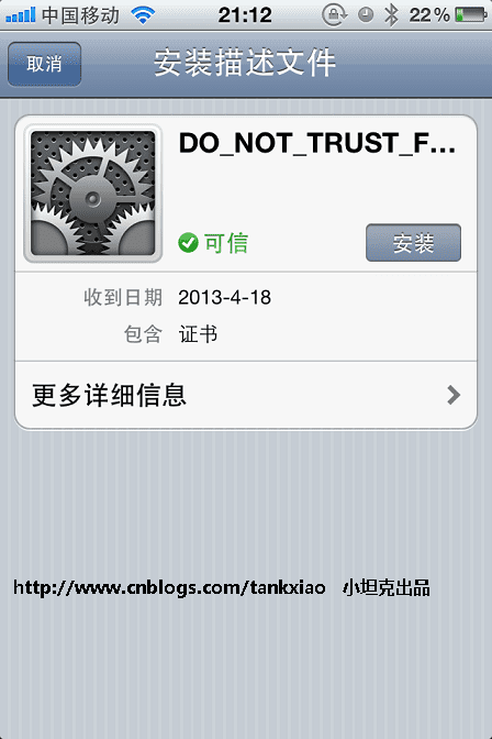 有时候会发现, Fiddler 只能捕获IPhone发出得HTTP请求, 而不能捕获HTTPS请求, 原因可能是证书没有安装好。 解决办法是: