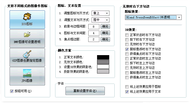 与传统的贴图方案相同,旧版控件需要为每一个控件设置相同的图片来确定其外观。例如,一个窗口中有10个按钮,若要修改其外观可能会需要使用下面的代码: