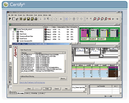 Synplicity公司出品的Certify是RTL级多片分割与综合ASIC原形验证技术解决方案。为了提高复杂芯片一次成功的可能性, Certify为客户提供了利用多片FPGA芯片快速而详细的调试和验证大规模ASIC芯片的解决方案。Certify可以快速地在RTL级创建原型,并 利用FPGA来实现。同时,Certify提供给客户在实时条件下联合调试软硬件的能力。另外,Certify又加入了DW和门控时钟的支持,这样低功耗 设计(手持类芯片)的芯片验证就不存在问题了