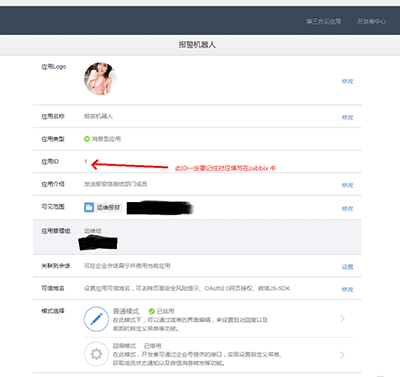 :param agentid: 企业应用的id,整型。可在应用的设置页面查看
