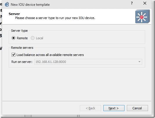 上面有一个需要注意的地方:就是在配置远程服务器IP地址的时候可以把该地址和本地服务器的地址指向同一个网段,但是本地服务器的端口号不要和远程服务器的端口号一样,例如可以把本地服务器的端口号设置成8001,远程服务器的设置成8000。这样既不会有端口号的冲突也可以让本地服务器的IOS模拟设备和远程服务器的IOU模拟设备进行互联!