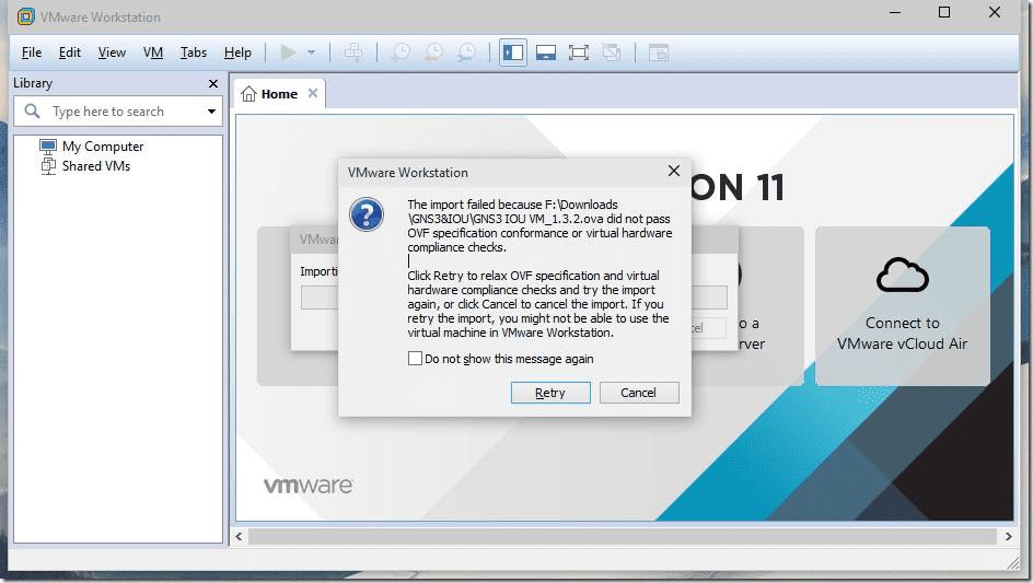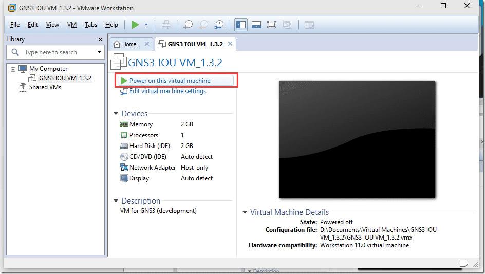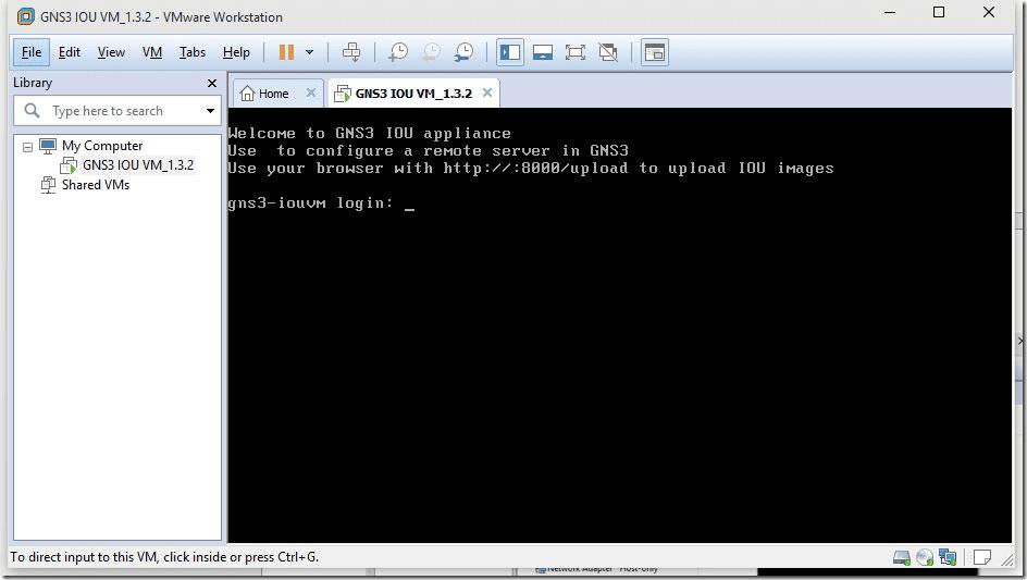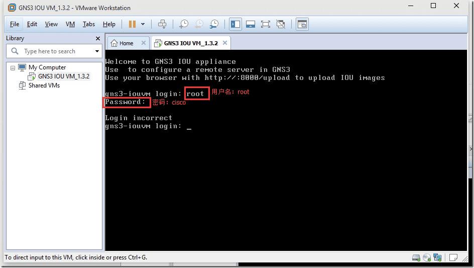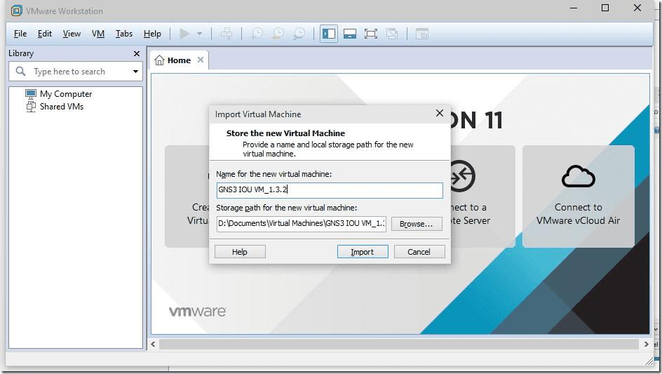 把下载的虚拟机模板-GNS3 IOU VM_1.3.2.ova导入到VMware中。
