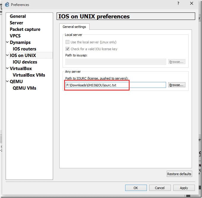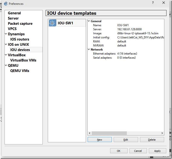 注意:建议IOU的版本和GNS3的版本保持一致!