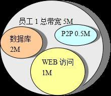 不同的用户可以分类,对不同的类可以分配不同的总带宽,也即对每台主机分配一个总的带宽,他的全部外部网络访问的带宽总和不能超过这个值。分类标准可以按照网络实际使用情况,也可以按照员工的职务级别的重要性。