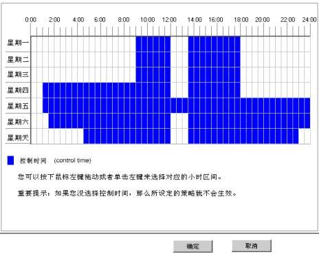 你可以通过时间计划给予你的网络管理更多的人情味,把全天24小时划分为工作和非工作段,在非工作时间段内员工可以自由访问网络资源,而工作时间段中员工的互联网访问将受到限制。时间控制使用图形化的方式用鼠标拖拉即可控制,非常方便灵活。