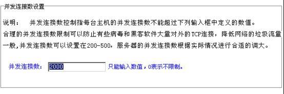 本系统能够对内部主机访问外部的并发连接数进行控制,管理员可以在几乎不允许网络连接的并发连接数1到不控制之间任意设置,具有非常大的灵活性。可以有效控制病毒爆发后的大量对外垃圾甚至有害连接。