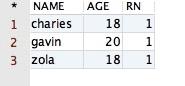 从上面的结果可以看出,其在原表的基础上,多了一列标有数字排序的列。那么反过来分析咱们运行的 SQL 语句,发现其确实按字段 AGE 的值进行分组了,也按字段 NAME 的值进行排序啦!因此,函数的功能得到了验证。