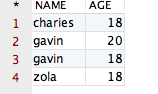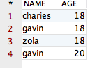 观察以上的表,咱们会发现:拥有相同 NAME 的记录有两条,拥有相同 AGE 的记录有三条。如果咱们运行下面这条 SQL 语句,