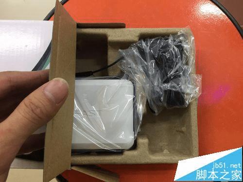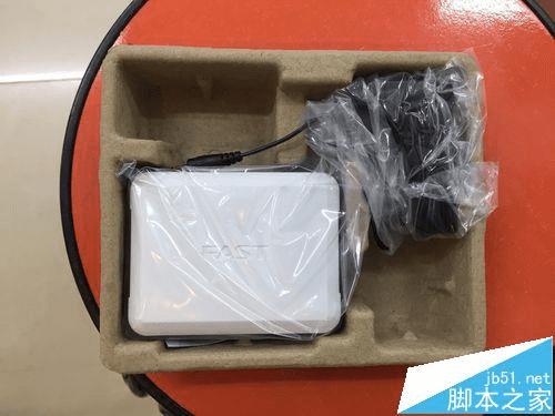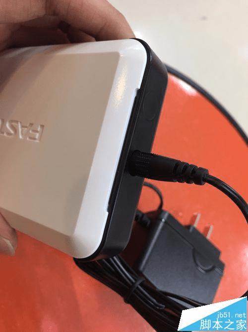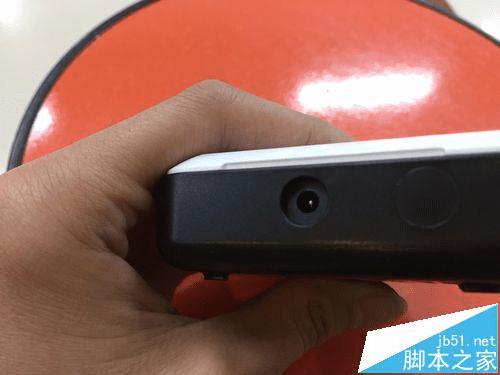 9、我们可以看到这个圆孔就是和电源线相连的插上就可以,最后在插入到电源中,插网线就可以使用了。