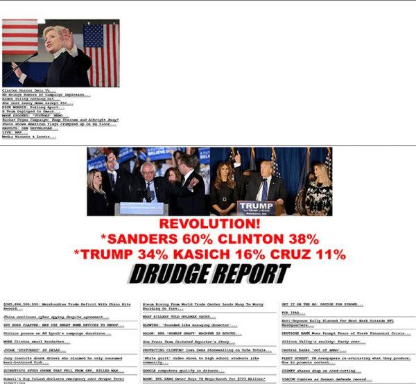 不可思议吧,上图是2016年The Drudge Report网站的主页