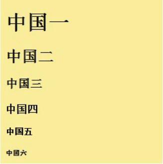 HTML定义<h1></h1>到<h6></h6>六个<h>标签,分别用来不同大小字体的标题(Heading)。字体由大到小,<h1>最大,<h6>则最校