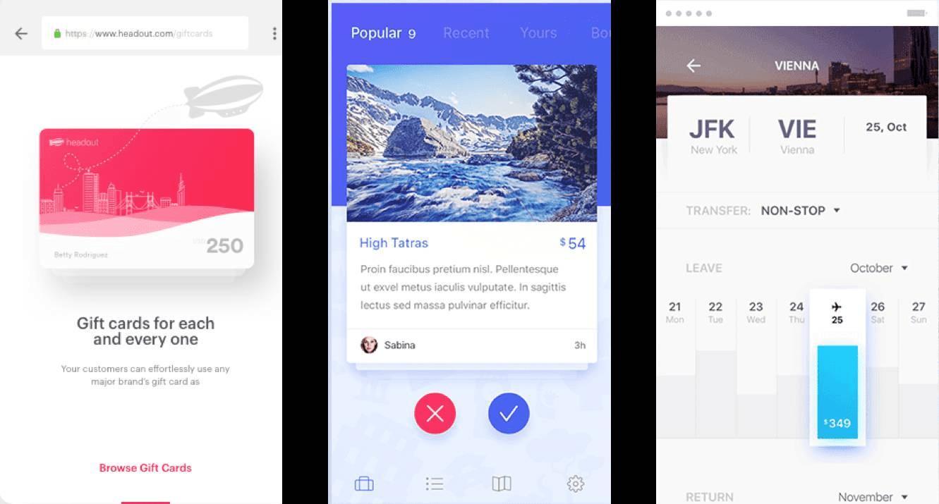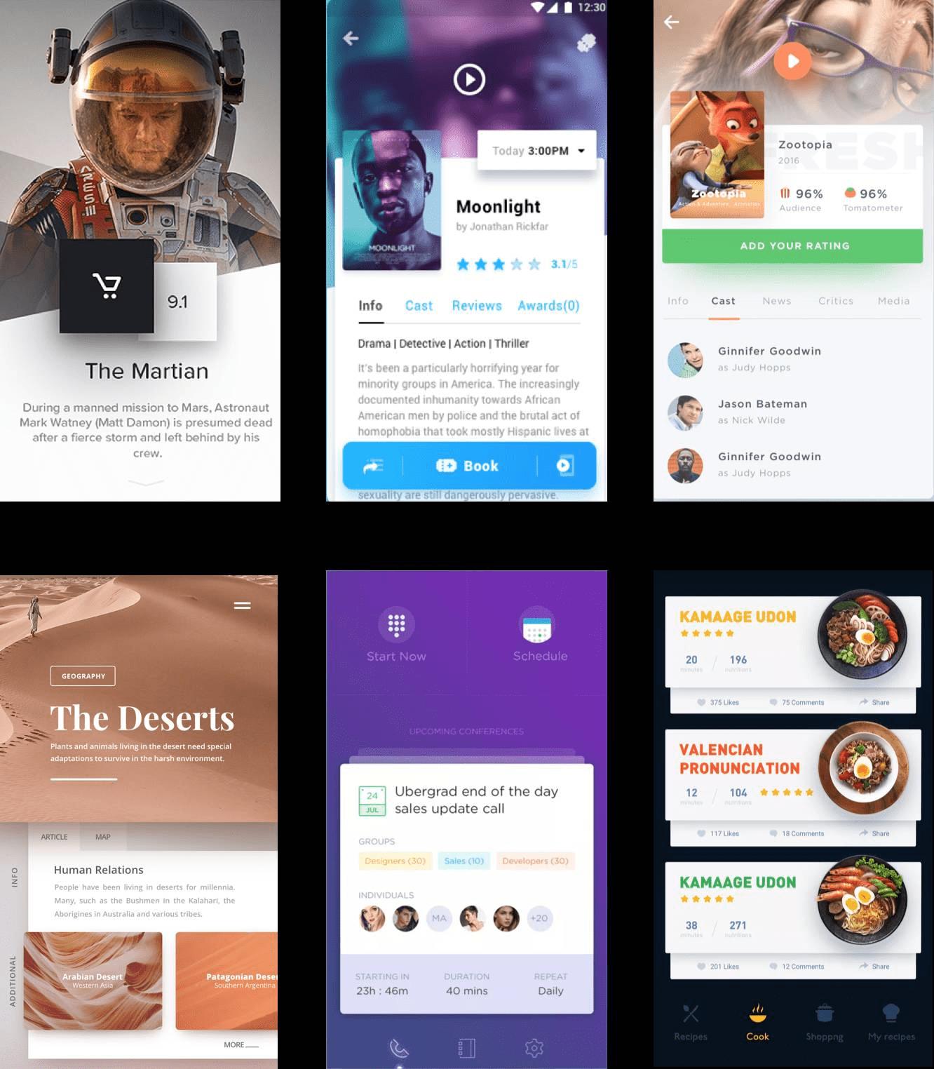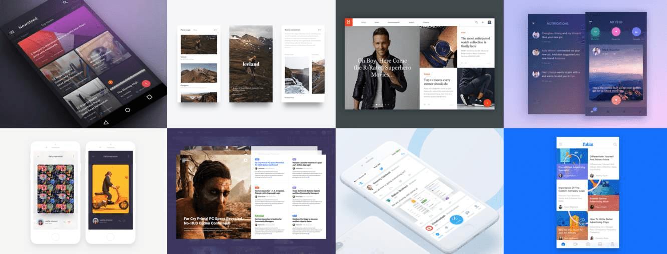 随着扁平化1.0运用了两三年,新的扁平化2.0时代,在渐变流行打破了开端,这周研究一些扁平化2.0设计师的移动端设计布局形式,整理分析了一些常用的布局形态。