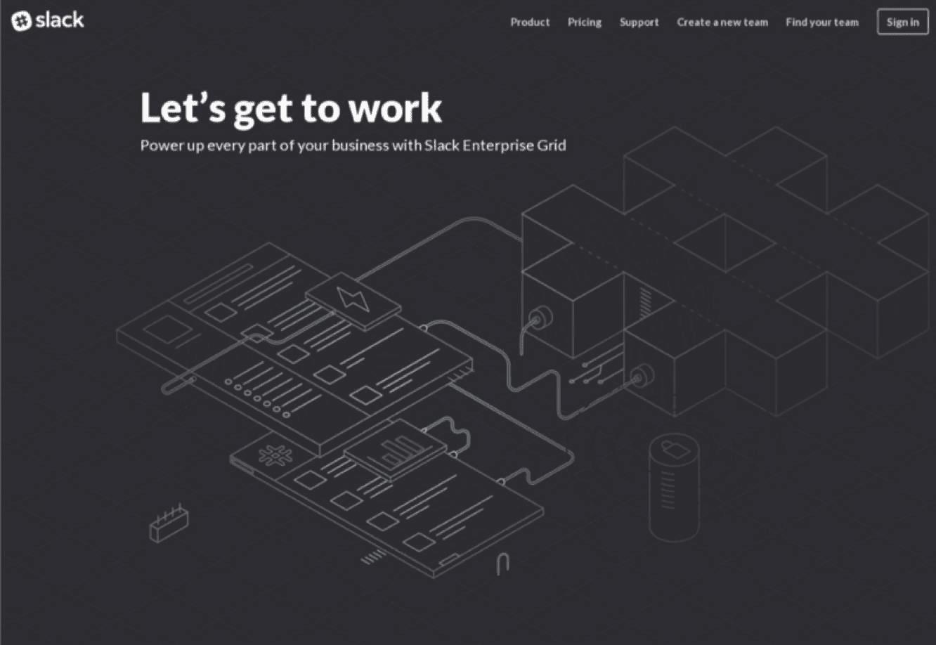 简析:slack的官网上主banner图形采用的这种设计方法,让主页更有空间感。