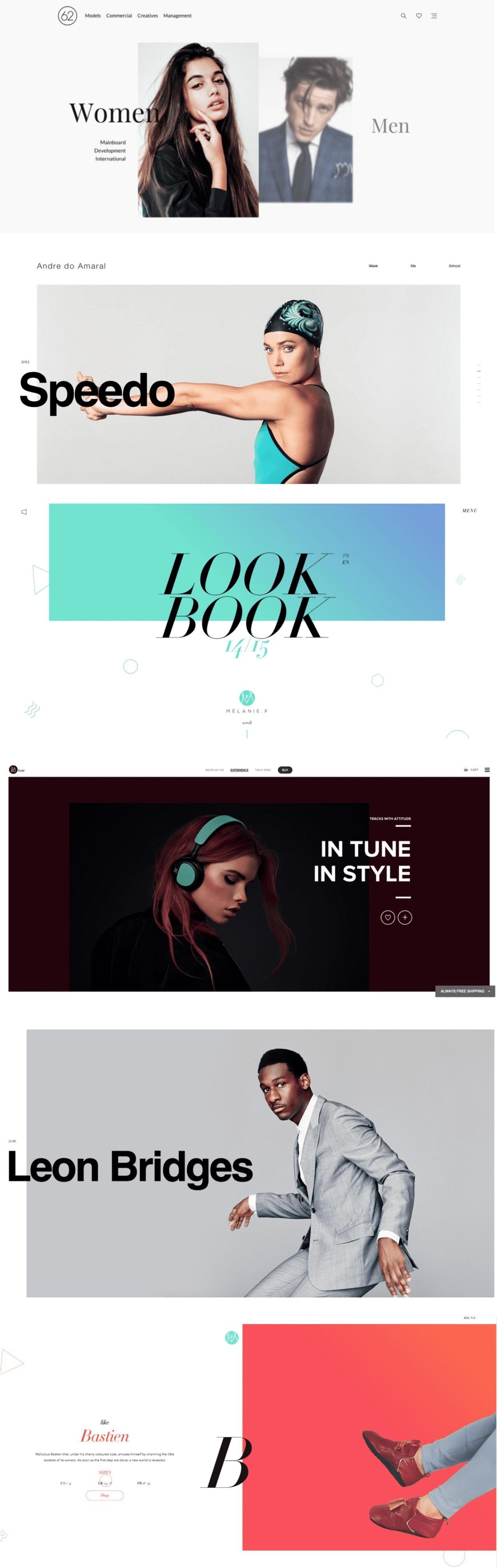 简析:这种风格打破网格,图片局部展示,很好的在平面有序的空间里形成了视觉差异性,这种差异性往往让页面显得独特,但是需要注意页面的留白和字体的运用选择。
