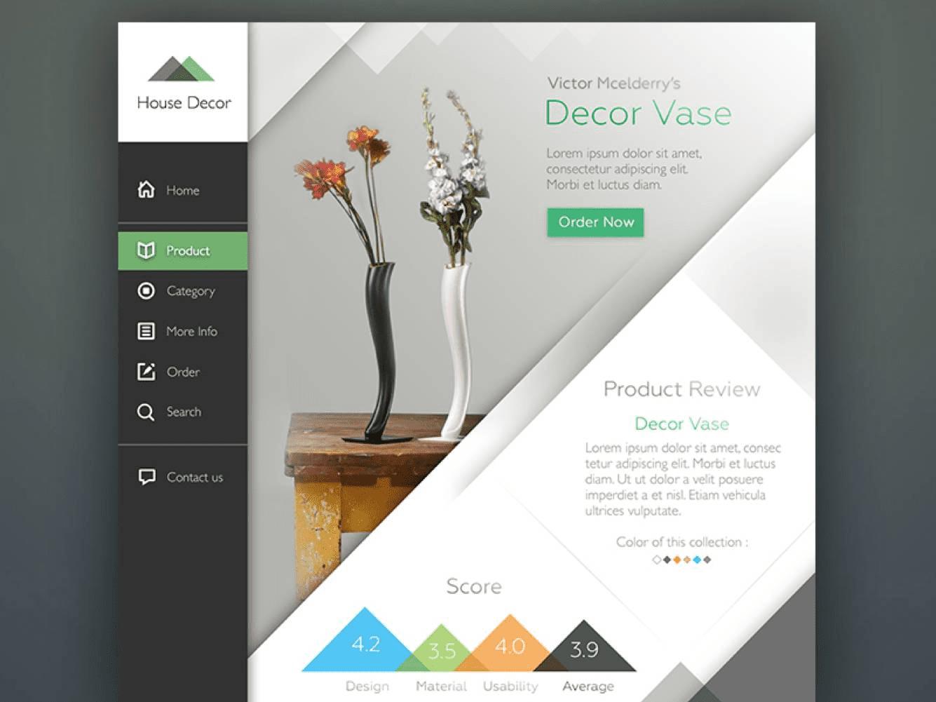 简析:House Decor的后台设计很好的通过对角线布局来体现去空间感和仪式感。