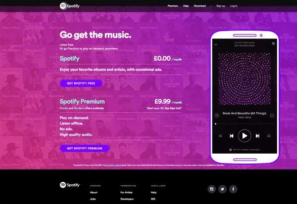 Spotify提供了30天的免费订阅服务,来吸引用户。