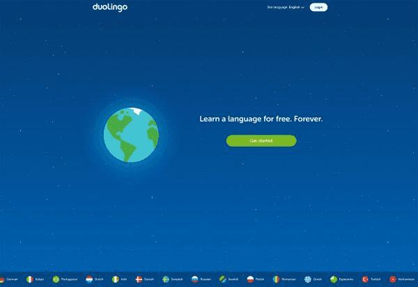 多邻国的登录页面底部,放置了一句号召语,呼吁目标用户赶紧体验产品