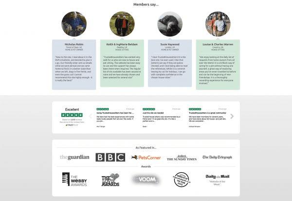 Trusted Housesitters展示了目前服务的知名企业标识与获得的奖项。