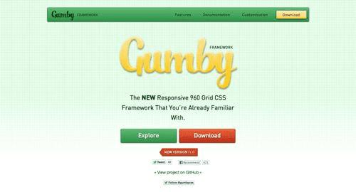 如果你在响应式网站设计这方面是个新手,Gumby框架对你来说绝对是个上手的好地方。 Gumby是一个基于SASS(一门CSS扩展语言解析器)响应式的CSS框架,它自带模板以及Web UI工具包,有各种好看的按钮、表格、导航、标签、JS文件,响应速度快。它还支持无编码设计,就算你不懂技术操作起来也很简单,很容易上手,在后期维护方面也没有什么障碍。