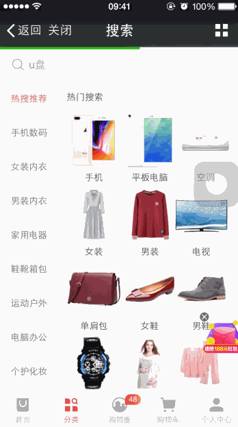 从上图京东购物效果上来看,在点击搜索拉起一个搜索界面,然后点击左上角反回,只是将搜索界面收起,而页面没有重新像读取进度条一样去返回,而我页面需要的正是这样的效果,下面就用vue来做一个这个过程的demo吧。
